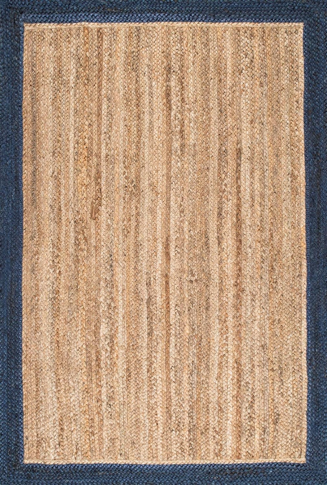 Beige and Blue Jute Rug – Eco-Friendly Natural Fiber Area Carpet