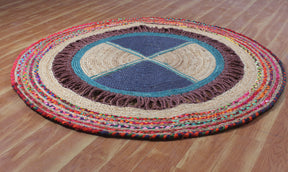 Eco-Friendly Round Chindi Rug – Braided Cotton & Jute Floor Mat for Rustic Interiors