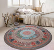 Geometric Beige & Multicolor Colorful Jute Chindi Cotton Area Rug