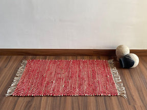 Hemp Dhurrie Rugs, Traditional Red Footboard entryway Rug Chic Victorian Hipster