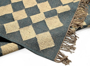 Dhurrie Rugs,Checkerboard Rug Blue White Rug Ecofriendly Area Rug, Bedside Area Rug