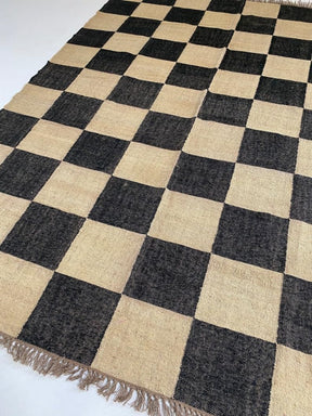 Wool Kilim Area Rugs,Checkered Pattern Black Color Ecofriendly Area Rug - is backordered and will ship as soon as it is back in stock.