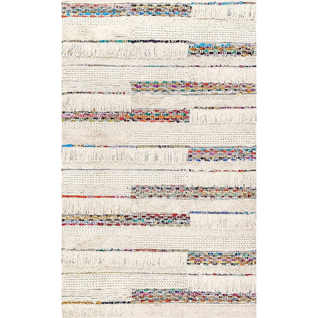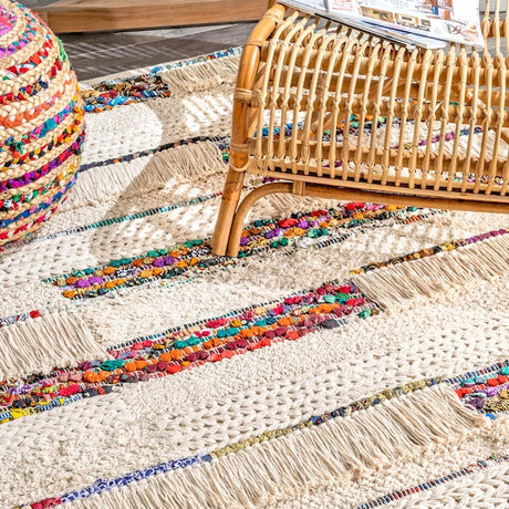 Handwoven Cotton Wooled Multi-Ivory Rug for Living Room