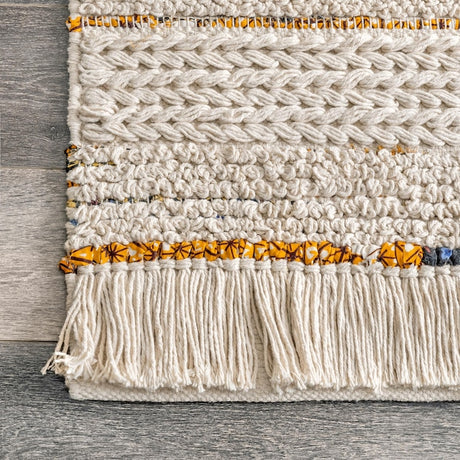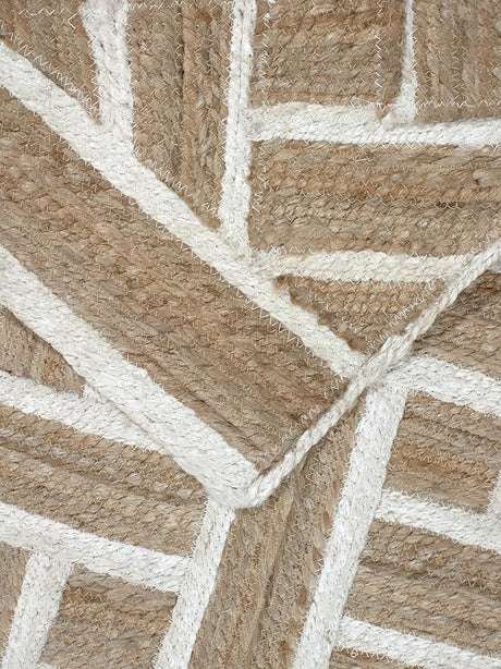 Handwoven Natural Jute & White Wool Boho Style Rug, Eco-Friendly Rugs