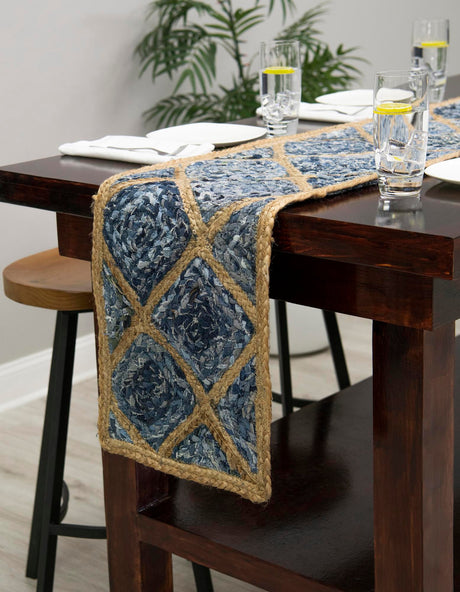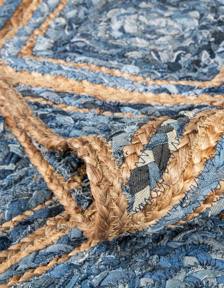 Ab $55.20 USD$82.80Grundpreis /Nicht verfügbar Handwoven denim cotton and jute hearth rug,Hand Braided Jute Table Runner Rug