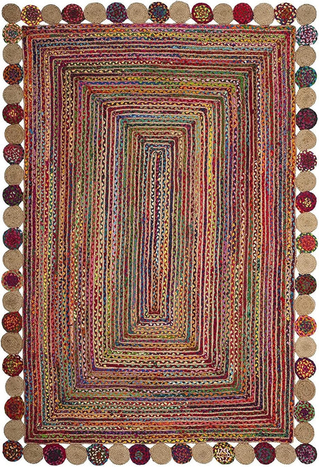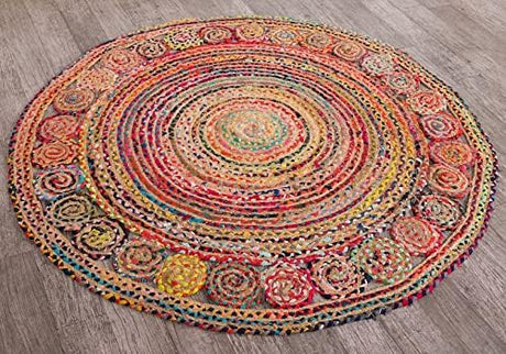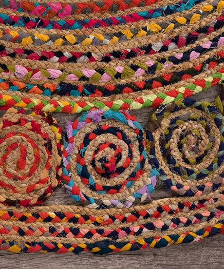 Handmade Recycled Chindi Rug – Braided Jute Cotton Pinwheel Design