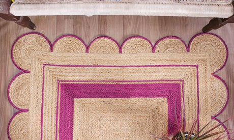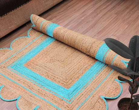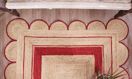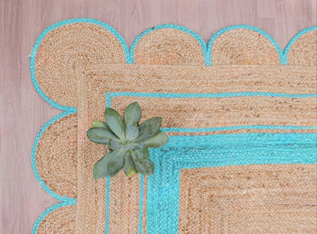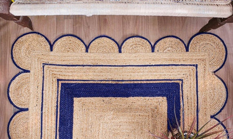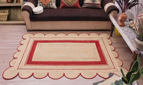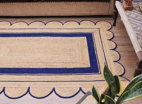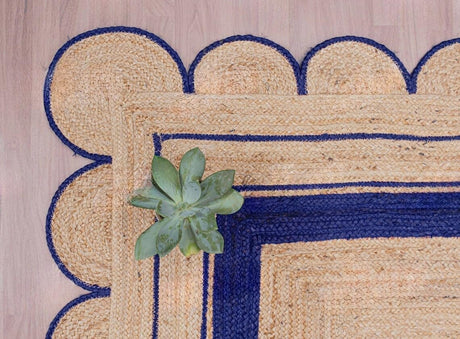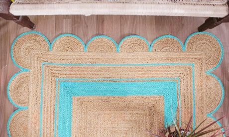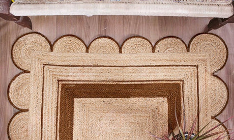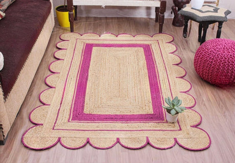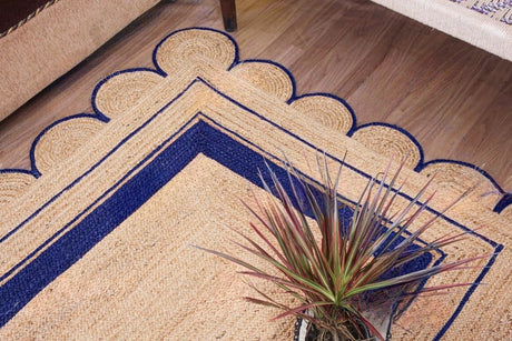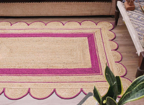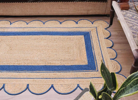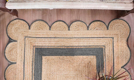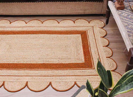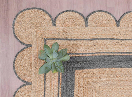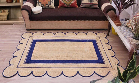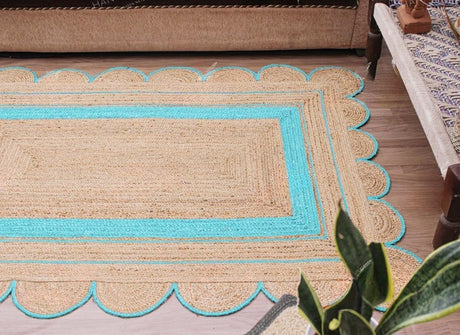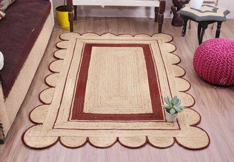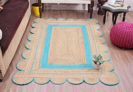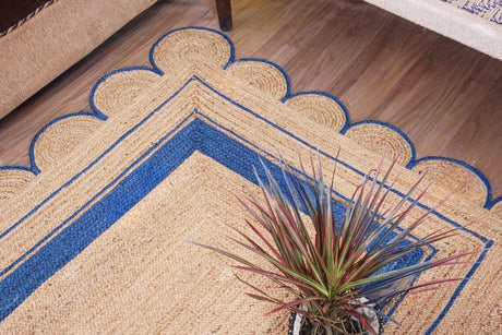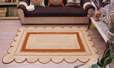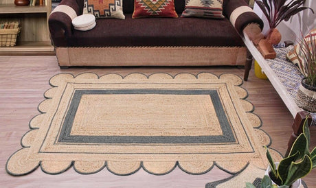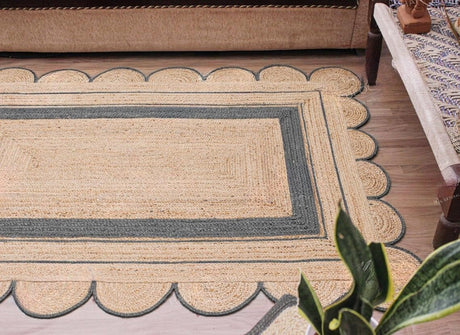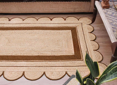 Handmade Scalloped Jute Rug – Boho Natural Fiber Rug with Unique Design