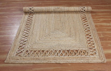 Handwoven Jute Area Rug – Natural Hand-Braided Rustic Floor Carpet