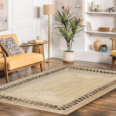 Handwoven Bohemian Jute Rug with Black Border for Modern Homes