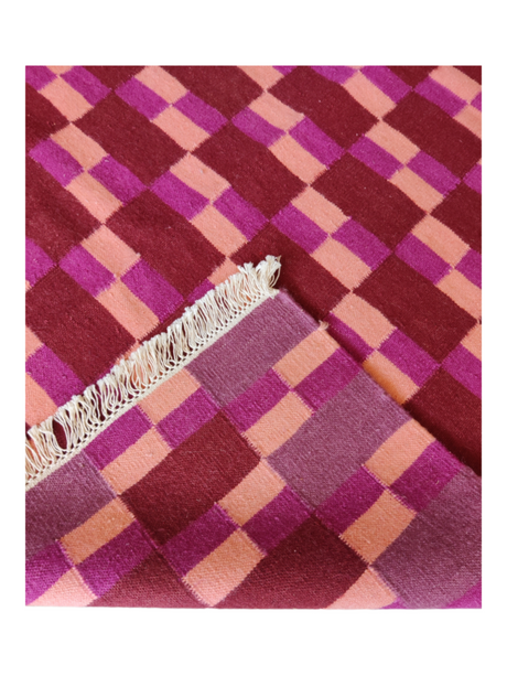 Handmade Purple Rust Color Woven Kitchen Natural Wool Kilim Dhurrie Rugs
