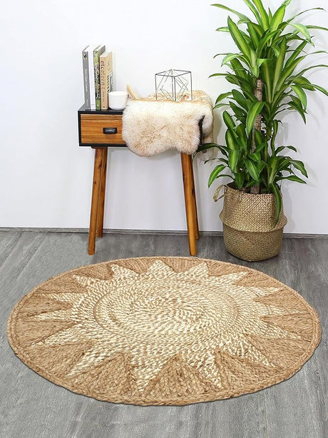 Traditional Round Jute Rug – Natural Door Mat for Bedroom, Living Room & More