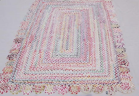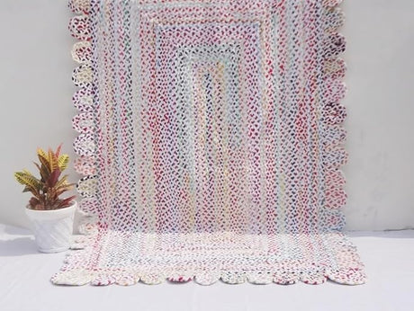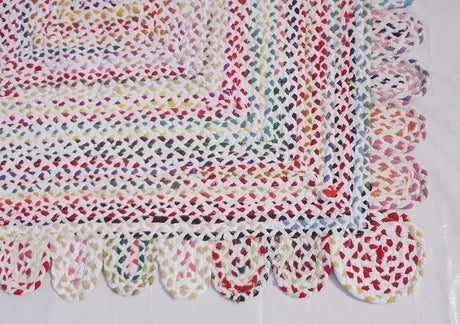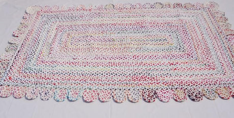 White Hand Woven Scalloped Cotton Rugs Washable Best Gift For Home Decor