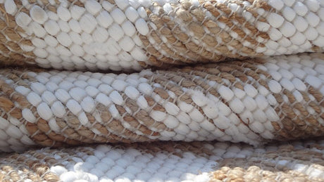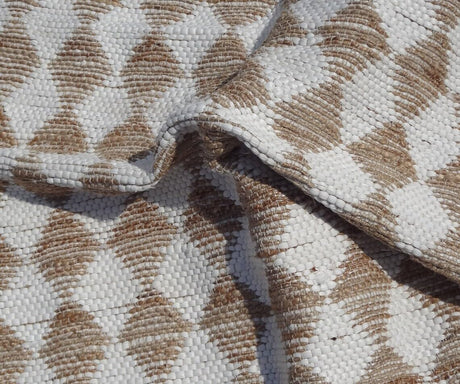 White Cotton & Jute Rug Dimond Pattern Boho Hand Woven Cotton Rugs,Natural Fiber Rugs