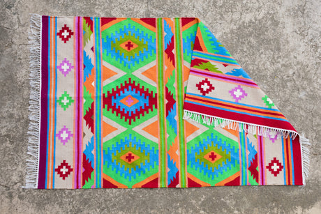 Wool Cotton Kilim Area Rug Vintage woolen rug Bed Side Kilim Rug