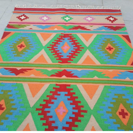 Unique Design Cotton Wool Rug, Handmade Modern Kilim Woven Rug