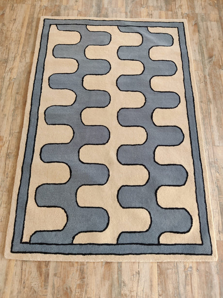 Wool Tufted Home Decor Area Rug, Blue & Grey