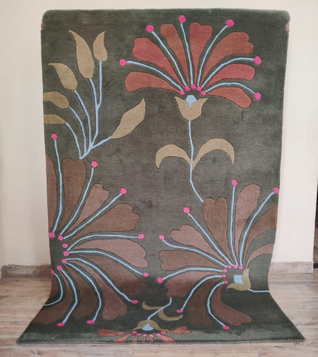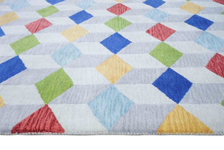 Wool Tufted Designer Bedroom Rug,Multicolor
