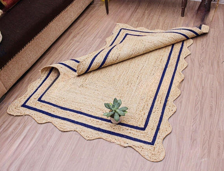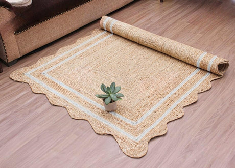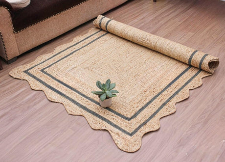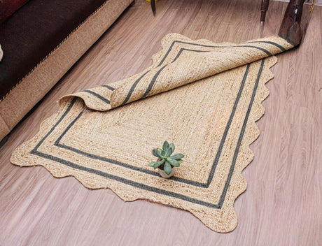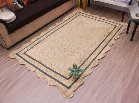 Bohemian Scallop Edge Jute Rug – Natural Fiber Handmade Area Rug