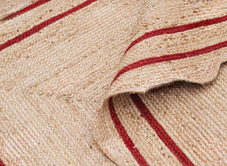 Boho Style Red Jute Rug – Hand-Braided Natural Carpet for Living Room