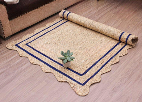 Bohemian Scalloped Jute Rug – Unique Design Natural Fiber Area Rug