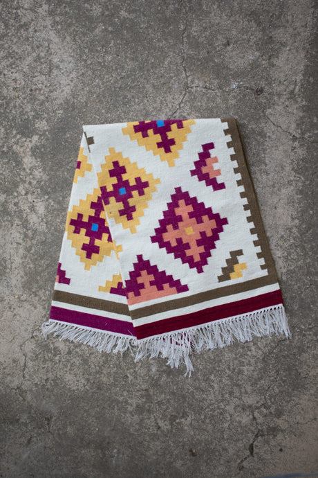 Boho Dhurrie Rug – Handmade Yellow Multicolor Wool Jute Rug for Modern Homes