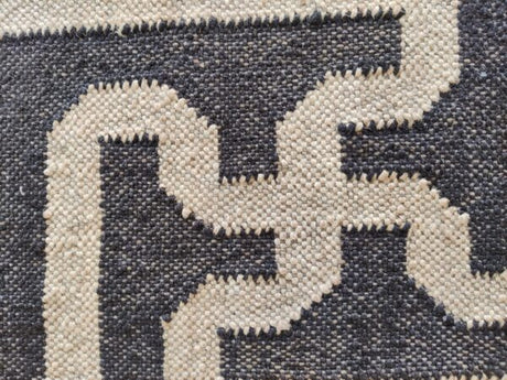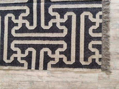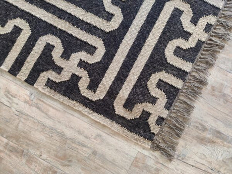 Boho Natural Wool Jute Kilim Dhurrie Rugs Black Natural Dyed Home Decor Rug