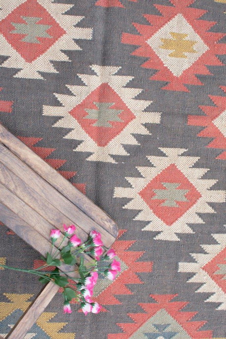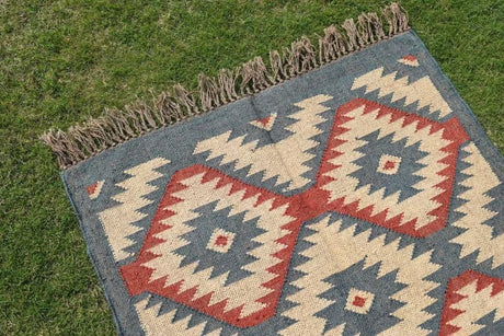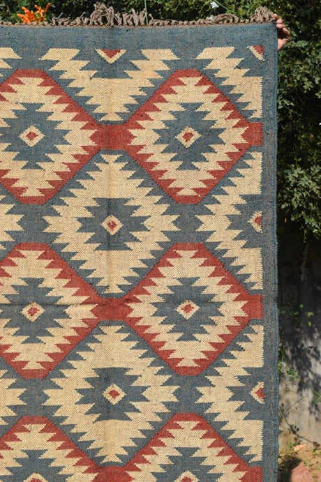 Boho Wool Jute Kilim Rug Handmade Navajo Rug