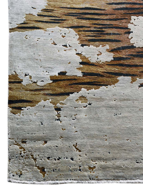 Handmade Modern Designer, Exclusive Knotted Modern Carpet, Grey & white
