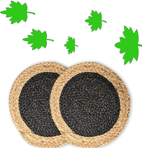 Eco-Friendly Placemats,Handmade Braide Black Border Beige Inside Coaster