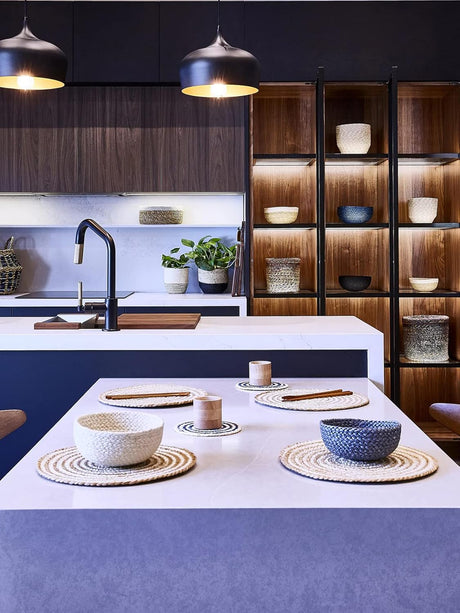 Boho woven Placemats Braide Black Border Inside Coaster,Eco-Friendly Placemats