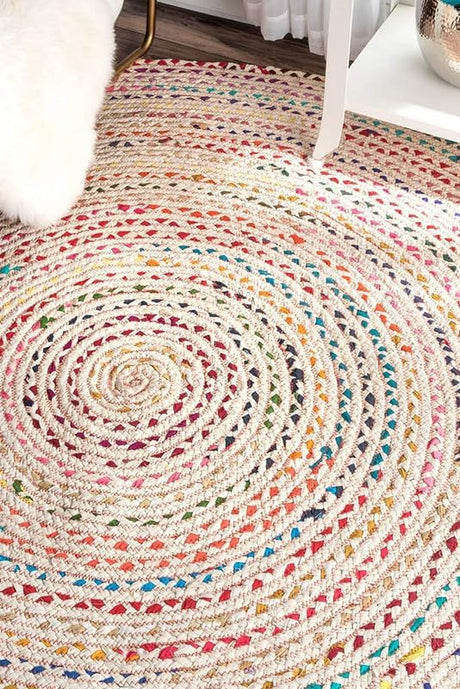 Eco-Friendly Round Braided Rug – Handmade Cotton & Jute Natural Fiber Carpet