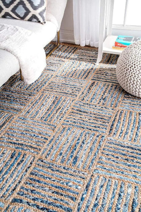 Eco-Friendly Denim Jute Rugs,Blue Beige Runner Rugs