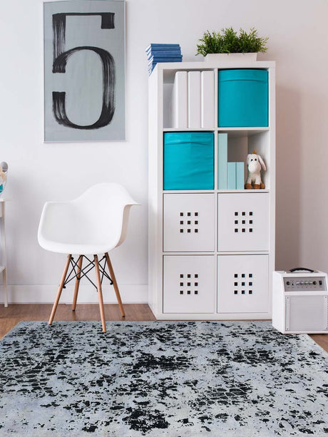 Hand Made Best Affordable Wool Bamboo Silk Carpet, Blue & Black