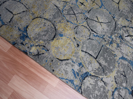 Hand Knotted Floor Carpet, Modern Design Hand Knotted Wool Carpet, Yellow -Black