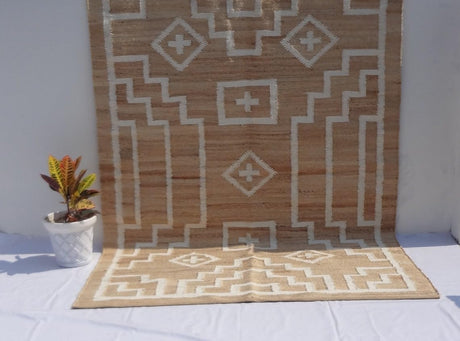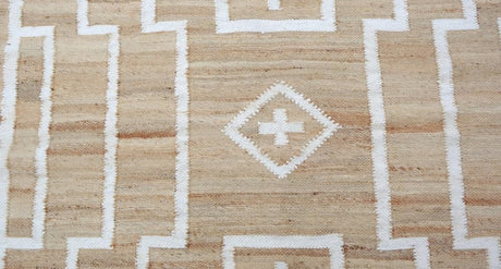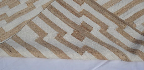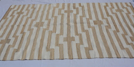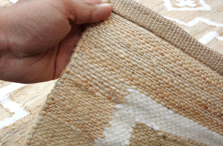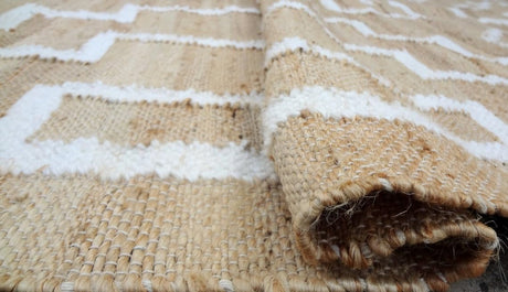 Handwoven Natural Jute & White Wool Boho Style Rug, Eco-Friendly Rugs