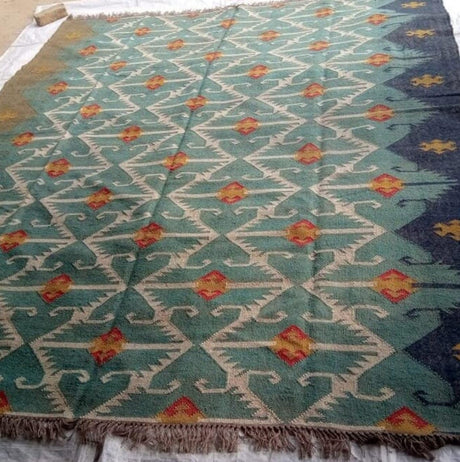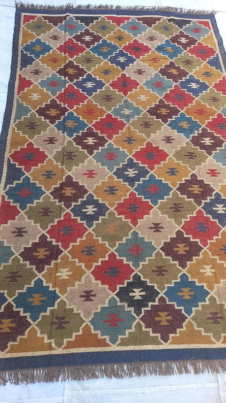 Kilim Area Rug,Indian Traditional Weaver Tribal Wool Jute Rug