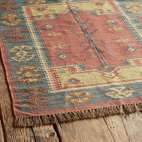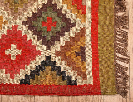 Wool Kilim Rug,Handwoven Wool and Jute Kilim Dhurrie Rug