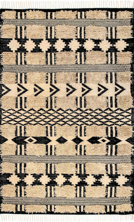 Handmade Kilim Rugs Collection Ivory and Black Premium Wool Area Rugs