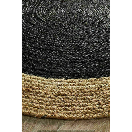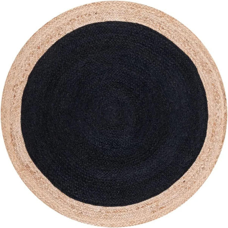 Handmade Black Rug Kitchen Dining Room Rug, Round Natural Rug