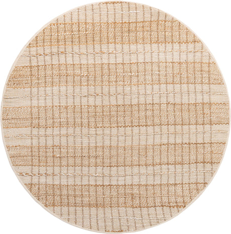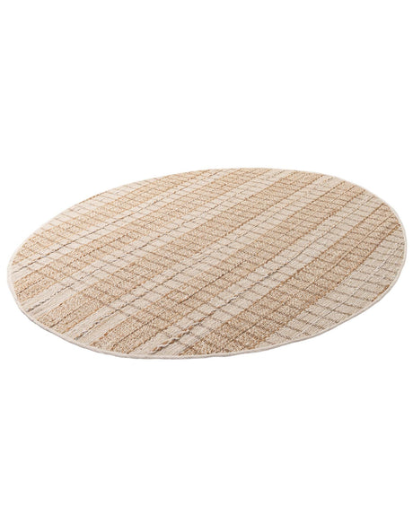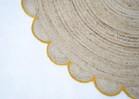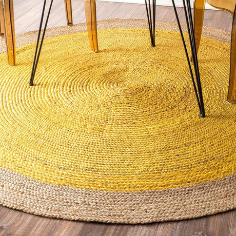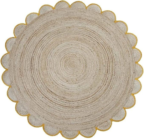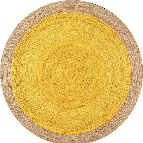 Beige & Yellow Handmade Jute Rug – Eco-Friendly Round Natural Fiber Floor Mat