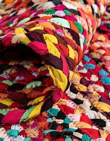 Eco-Friendly Round Chindi Rug – Braided Cotton & Jute Floor Mat for Rustic Interiors