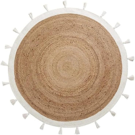 Boho Round Fringed Rug – Beautiful Jute & Cotton Area Mat for Modern Interiors