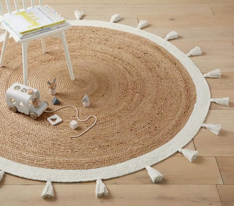 Eco-Friendly Round Jute Rug – Boho Style Fringed Natural Area Rug