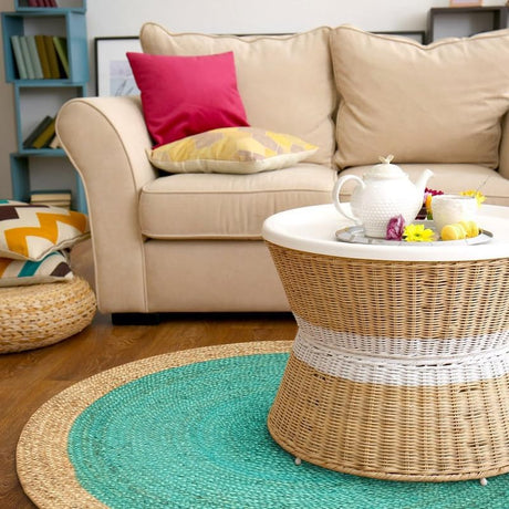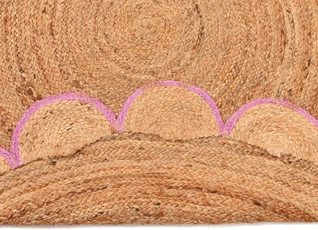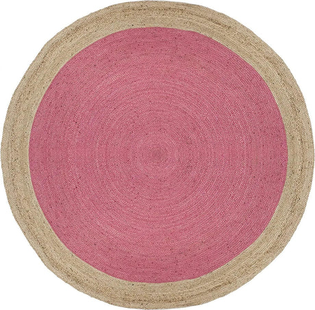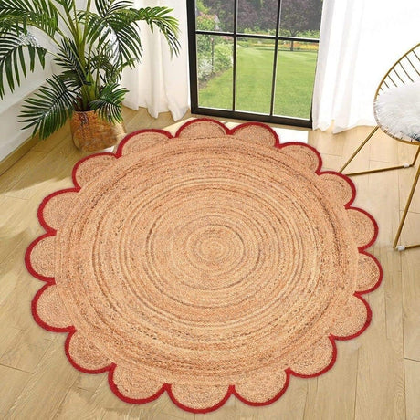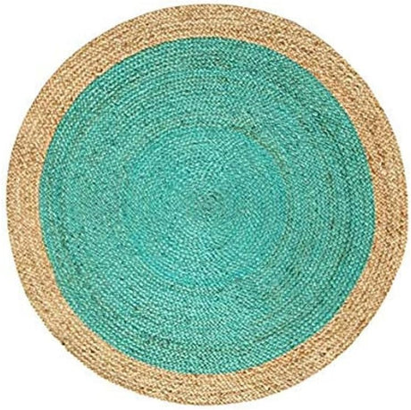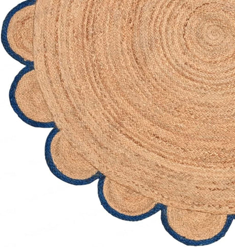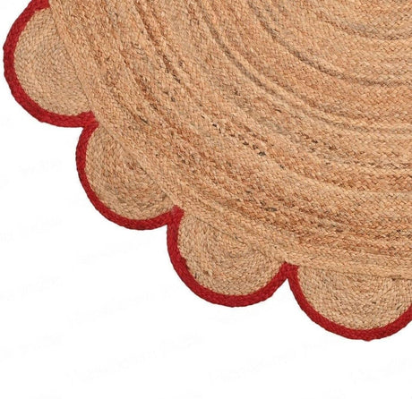 Handwoven Round Jute Rug with Colorful Border – Stylish Home Decor