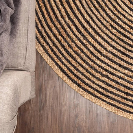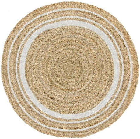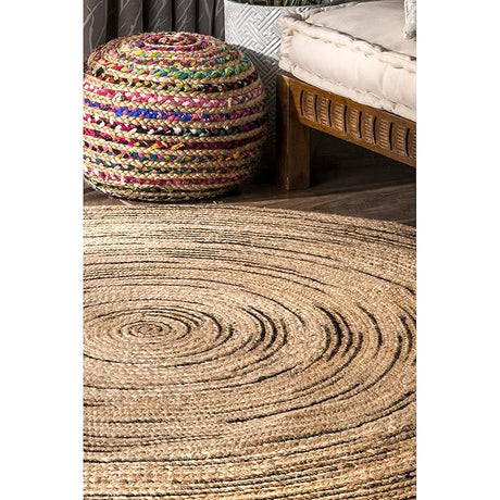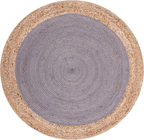 Handwoven Two-Tone Jute Round Rug – Boho Chic Hippy Area Rug