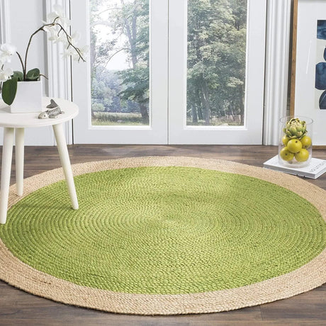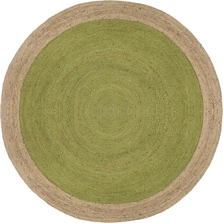 Hand-Braided Round Jute Rug – Rustic Green Natural Fiber Area Mat