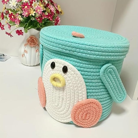 Jute Cotton Stripped Handcrafted Woven Planter Round Basket For Home Decore
