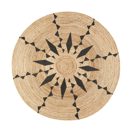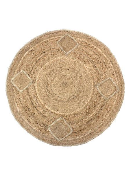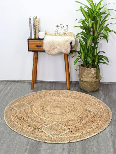 Handmade Round Jute Rug – Natural Fiber with Geometric Design