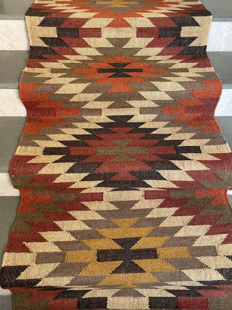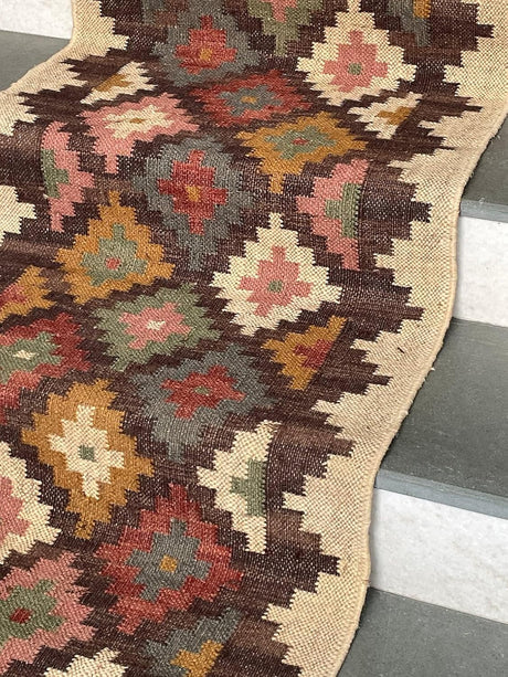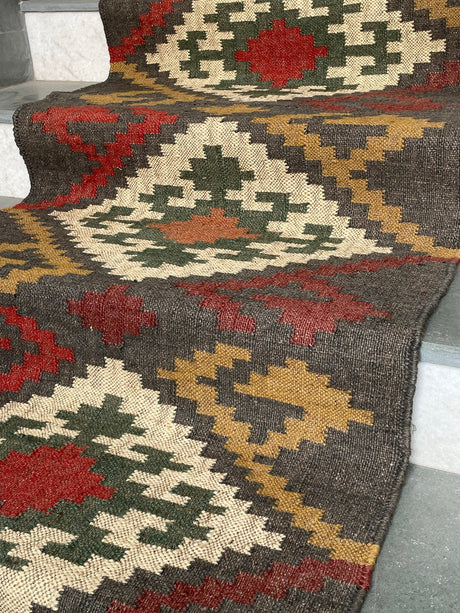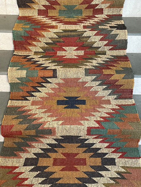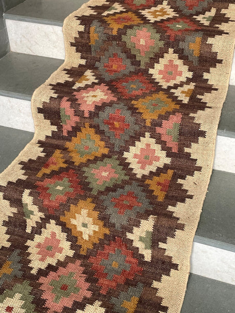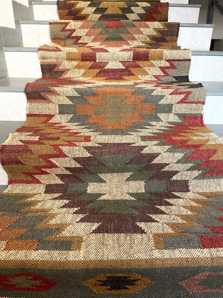 Kilim Jute Stair Runner – Boho Tribal Patterns