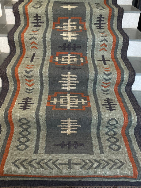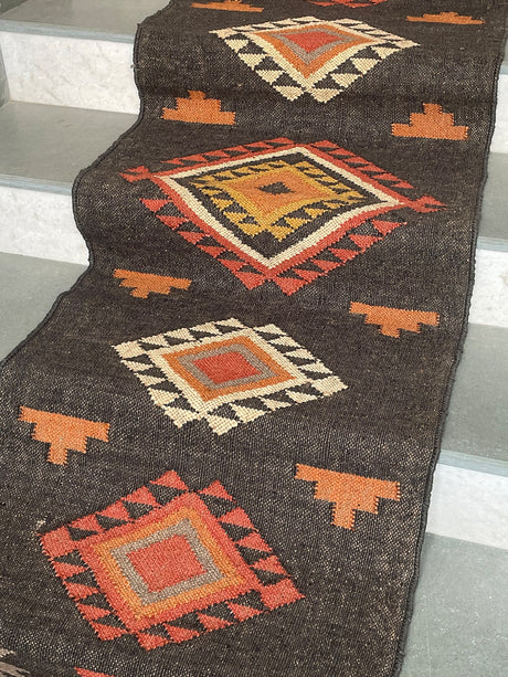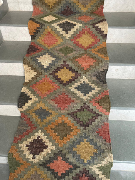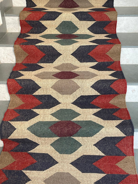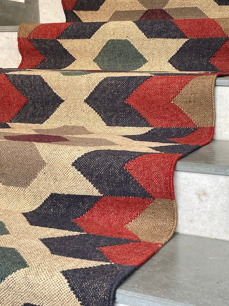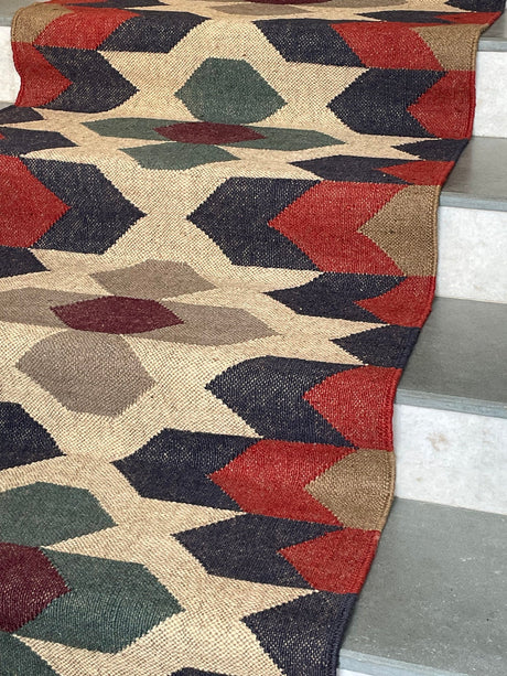 Geometric Kilim Jute Stair Runner – Traditional Meets Modern